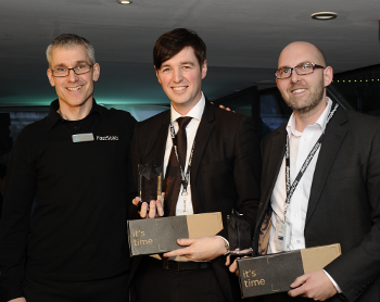 Photo (left to right): James Alty (MD, Apteco) with Best use of FastStats® 2013 Award winners Rob Jones (Qbase) and Lee Gisbourne (RNLI)