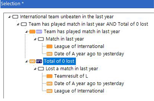In the analysis in this section we’ll use the Segmentation tool to examine winning streaks. I’m considering streaks in terms of time, rather than number of matches. We’ll start by defining whether a team has been unbeaten in the last year as being ‘they have played at least one match in the last year and they have not lost in that time’.