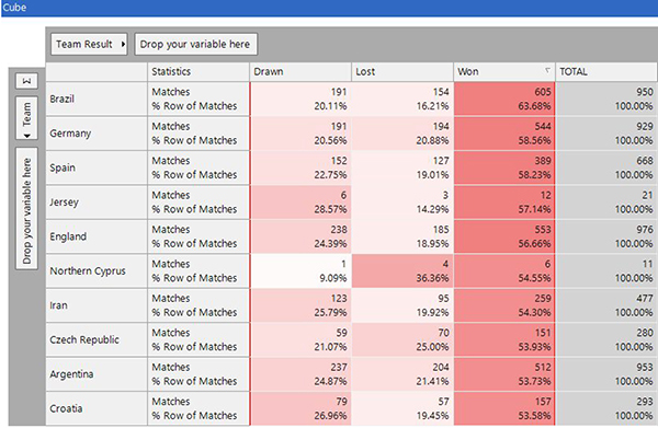 In this blog post we’ll undertake some general exploratory data analysis and use the Apteco FastStats Segmentation tool to look at teams who have remained unbeaten for significant periods of time with the aim of showing that Tunisia are a better team than their betting odds would suggest.