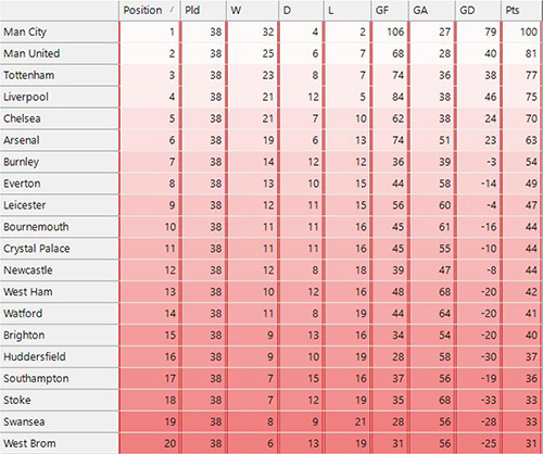 Well – here’s the result, a pretty close resemblance to the league table that you’d find from the 2017/18 season (2).