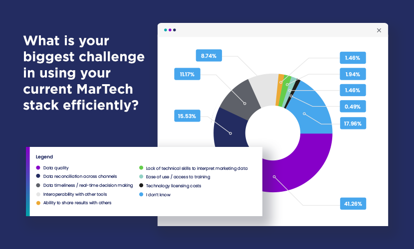 We found that for a majority (41%), data quality is the biggest challenge, followed by data reconciliation across channels, data timeliness, and interoperability with other tools.