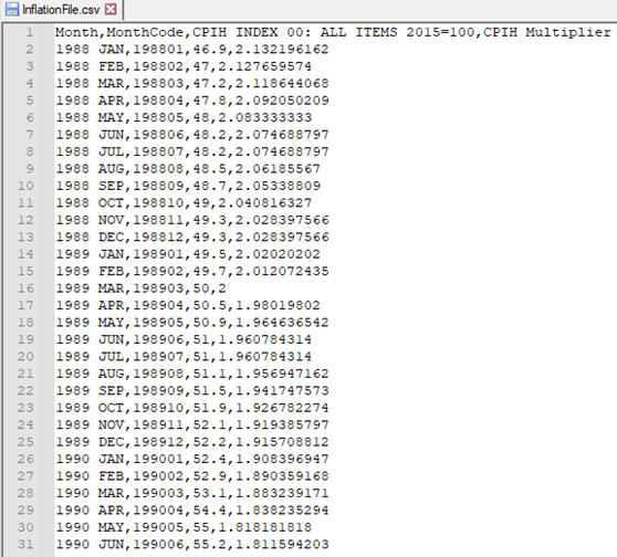 Using an external data file – inflation indices