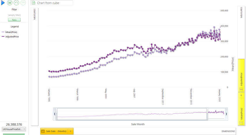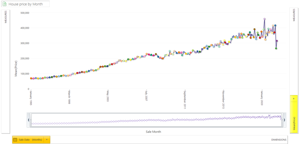 This dataset is useful in this context to illustrate a nice use-case of using a file in an expression as we have such a large date range. An obvious starting point for analysis is to look at the change in house prices over time.