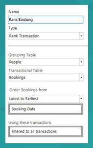 Within the expression we would then select bookings with a Rank = 1, and then add this as a clause to the And() expression in the first example.