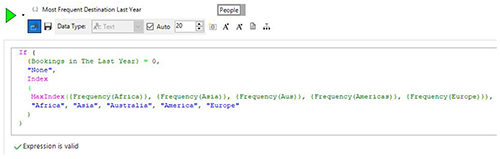 We’ll be looking to extend this to allow a wider range of functions and the ability to pick not just the top group – although this is the one that will have the most common use case in marketing analytics. The above aggregation can be used on its own within an expression or combined in an expression in any way you wish. For example, you may want to find out whether the highest value destination this year is the same as last year for each customer. There are so many possibilities!